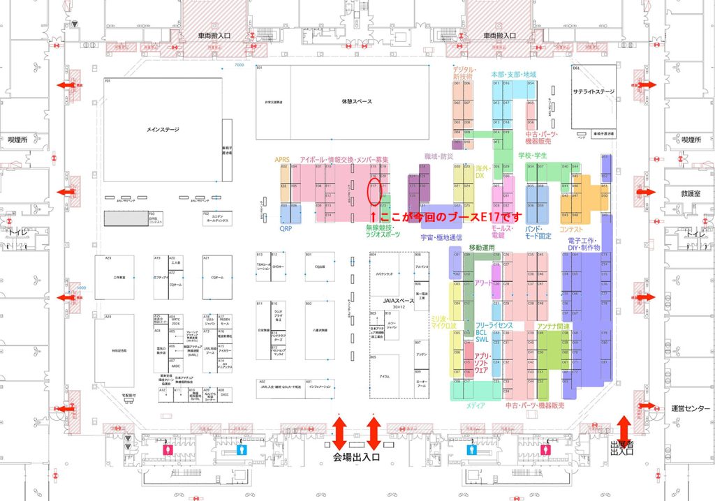 当クラブのブースは「アイボール・情報交換・メンバー募集」関連のブースか集まったEエリアの17番で、会場出入口のメインストリート上に位置する好立地でした。